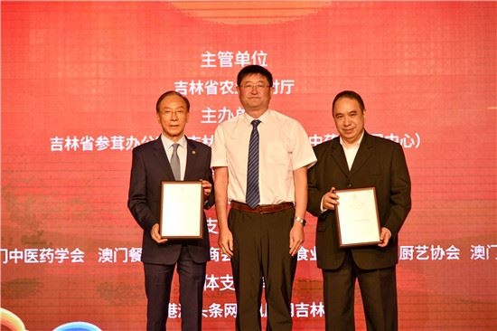 澳门中华总商会和澳门吉林省联谊总会荣获第七届“长白山人参”美食大赛支持单位称号。梁琪佳摄