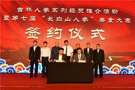 在这次的吉林省参茸办公室吉林人参系列经贸推介活动暨第七届“长白山人参”美食大赛上,长白山皇封参股份有限公司与南粤天然药物有限公司,抚松制药股份有限公司与澳门南粤天然药物有限公司,敦化市润绿农业科技有限公司与山旮旯健康食品有限公司,吉林省紫鑫药业股份有限公司与澳门风采中医药研发有限公司分别签署了旨在深化合作共拓市场的战略合作协议。(完)