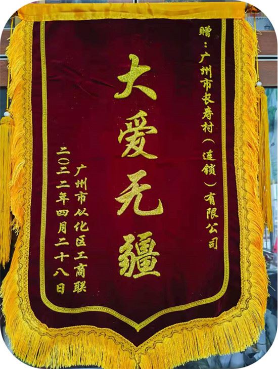 △广州市从化区工商联赠予的“大爱无疆”锦旗