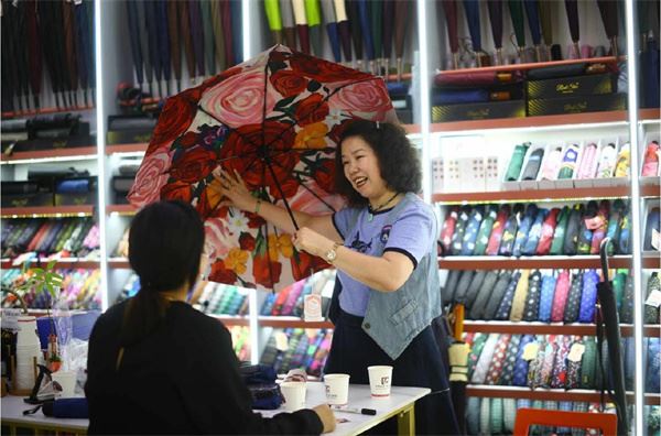 义乌中国小商品城作为“世界小商品之都”,通过“买全球”与“卖全球”,一直享誉世界,成为全球最大的小商品出口基地之一,外向度高达65%。如今这个“世界超市”不仅成为客商的采购胜地,也成为国内外游客逛街打卡的好去处。在国际商贸城一区,各式各样的饰品、挂件、儿童玩具、工艺品等商品玲琅满目,游客不时走进店里询问价格,外地采购商或手提肩扛或车拉担挑,满载而归。
