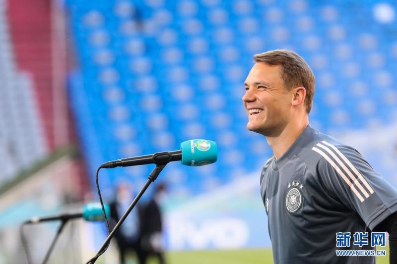 6月14日,德国队守门员诺伊尔在训练前接受采访。