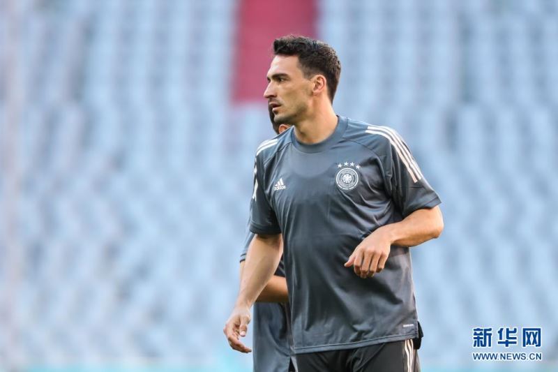6月14日,德国队球员胡梅尔斯在训练中。