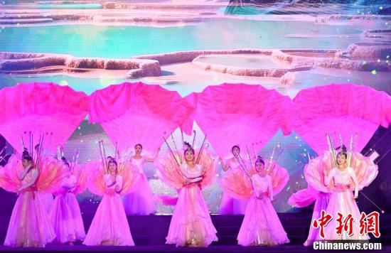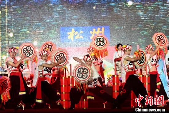 8月18日晚,第七届古城花灯会在四川松潘开幕。本次系列活动是以“花灯璀璨岷江源,喜迎建州70周年”为主题,旨在通过开展一系列高水准、多样化的音乐演出和融入生活的花灯文化活动,推动松潘文化旅游市场更加繁荣,助力文旅融合高质量发展,大力营造传承发展优秀传统文化的良好氛围,满足人民群众高品质生活需求,为“一城两心三地”和“五个松潘”建设贡献文化之力,同时向阿坝州建州70周年倾情献礼。图为开幕式上的文艺演出。