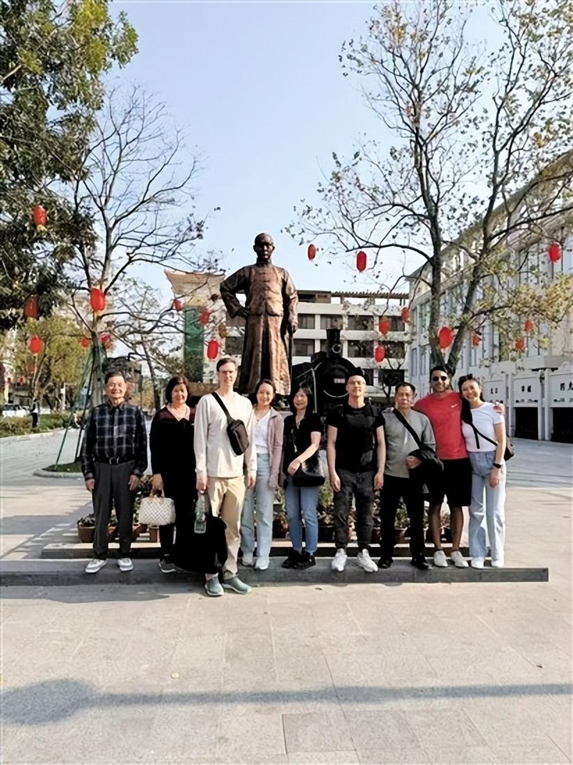 陈宜禧曾孙女陈小红一家参观陈宜禧纪念广场。受访者供图