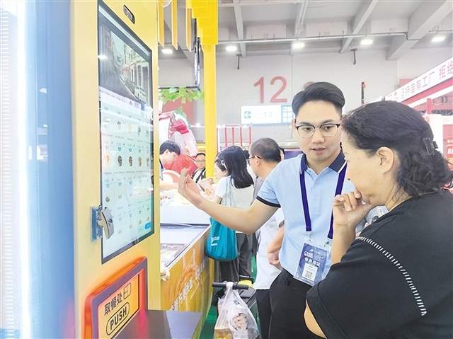一盒蒲烧鳗鱼饭经过自动贩卖机的传送带送到出餐口,不一会儿,一碗由台山国粮集团研发的珍香方便米饭便热气腾腾地呈现在眼前;“这个行李箱真的能全部拆开清洗吗?”丽明珠集团旗下品牌“OPENWATER开放水域”展位前,工作人员在采购商面前将行李箱拆解成多个部分。
