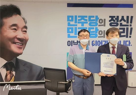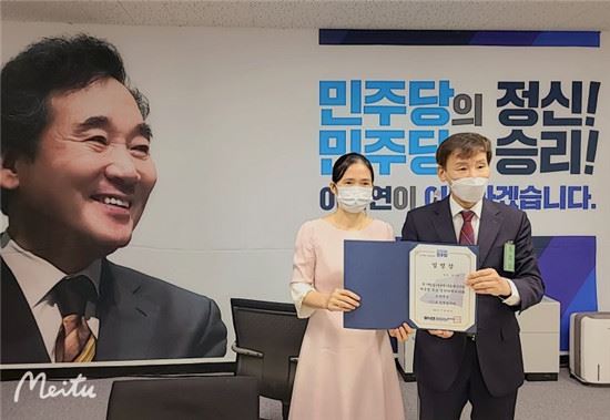 本报讯 (记者 李恩知 摄影报道) 原韩国国务总理、韩执政党共同民主党原党首、下届总统候选人李洛渊,2021年7月29日,以韩国执政党共同民主党总统候选人的名义,在首尔汝矣岛大山大厦党部办公室,正式任命中韩新媒体联合会首席执行主席兼韩国新华报社社长曹明权,为韩执政党共同民族党总统竞选对策委员会韩民族文化委员长。