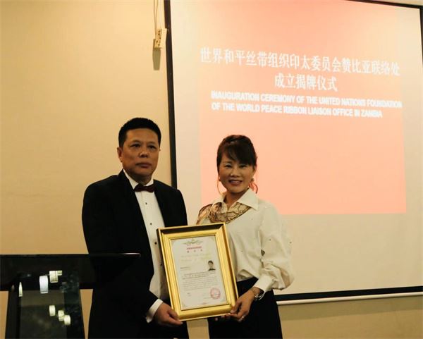 欧中之声赞比亚报道(记者 杜小凤)当地时间2月16日,世界和平丝带组织印太委员会赞比亚联络处在恩多拉市成立。世界和平丝带组织副秘书长兼波兰委员会总干事杜国勇代表陈恩田主席出席并为赞比亚联络处处长吴秀金授牌。