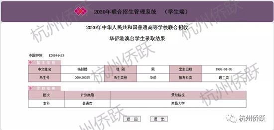 2020考生录取信息