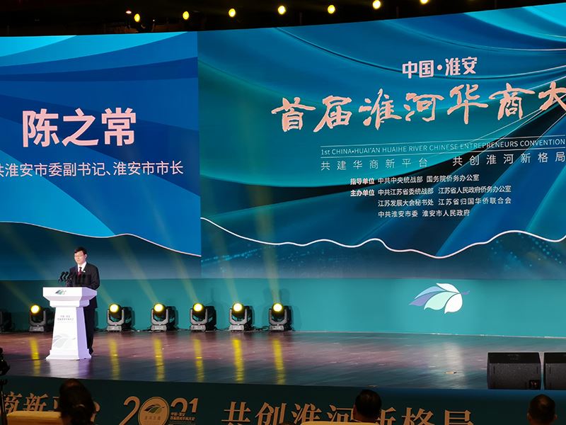 陈之常在致辞时说,千里长淮文脉悠远,润泽了文明中华,也滋养了淮安城市的文化之魂;千里长淮风光迤逦,点染了锦绣中华,也勾画了淮安城市的生态之美;千里长淮纵贯东西,链接了广袤中华,也成就了淮安城市的枢纽之位;千里长淮奔流不息,见证了盛世中华,也赋能了淮安城市的活力之源。我们举办首届淮河华商大会,旨在搭起“侨与桥”的联通,促进“心与心”的沟通,实现“梦与梦”的融通,更好助力淮河沿线城市发展。淮安将坚持以习近平总书记“把周总理的家乡建设好,很有象征意义”的嘱托为动力,聚焦打造“绿色高地、枢纽新城”发展定位,奋力开创高质量跨越发展新局面。作为东道主,我们期望以会为媒、以会为梯、以会为帆,与广大侨领华商、淮河沿线城市,携手共创美好未来。