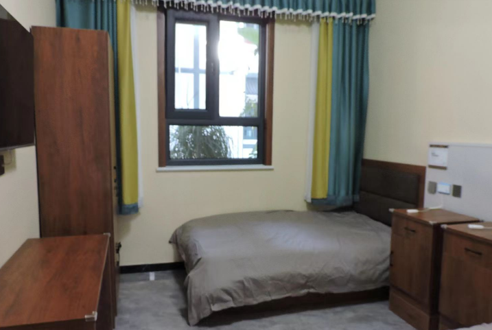 养老院按照三星级酒店的标准设计,二层楼房约有90多个房间。楼内除了普通楼梯外,还安装有两部电梯,供入住的老人使用。楼梯、走廊、卫生间等部位都安装有适应老年人生活的设施。全院的警卫、消防、监控设备等齐全完善。