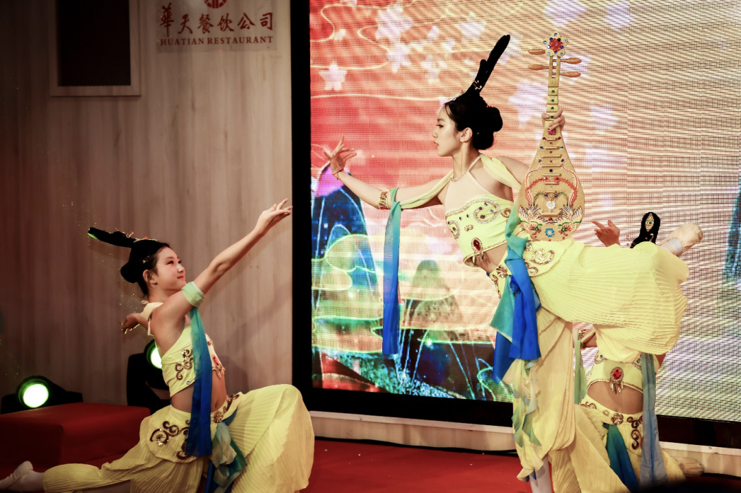 晚宴还精心安排了一系列丰富多彩的文艺表演,展现了中华文化的独特魅力。首先,国风舞蹈以其优雅的舞姿和动人的旋律,带领观众领略传统文化的韵味。接着,由古筝、竹笛等传统乐器的演奏的《上春山》为晚宴增添一抹古典的色彩,让人沉醉其中。最后,歌曲独唱《我的深情为你守候》、合唱《灯火里的中国》为晚宴营造出热烈的氛围。