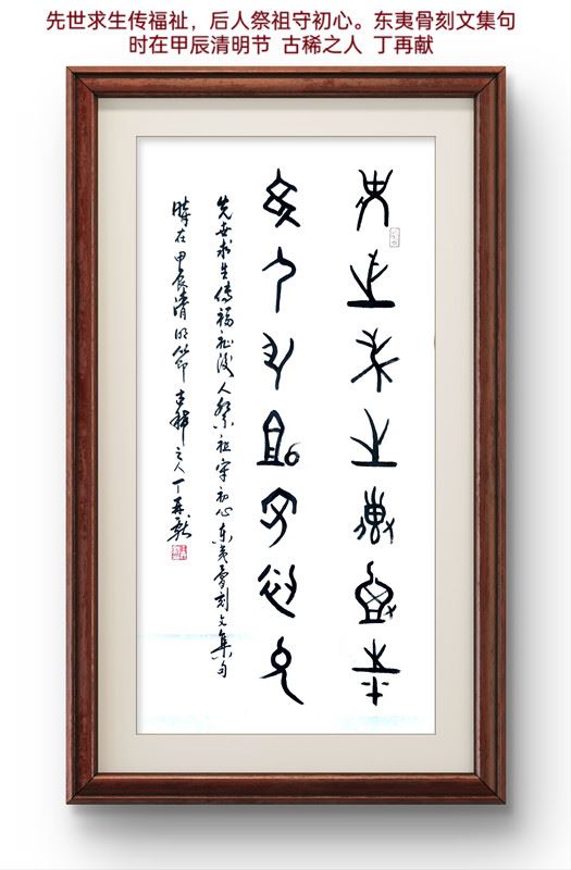 附丁再献老先生骨刻文清明节撰联墨迹: