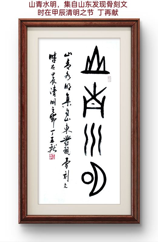清明节,又称踏青节、行清节、祭祖节,节期在仲春与暮春之交。清明兼具自然与人文两大内涵,既是自然节气点,也是我国传统的重大春祭节日。先世与后人阴阳相隔,清明时节雨纷纷,对先人的思念之情如雨丝不时会纷纷泛起。缅怀先人,慎终追远,既是一种精神寄托,也是一种传统仪式。著名学者、作家、诗人、一级书法家、中国骨刻文破译第一人、骨刻文书法艺术创始人丁再献先生在清明前夕,用破译并始创的骨刻文书法艺术创作了一副关于清明的楹联,联曰: