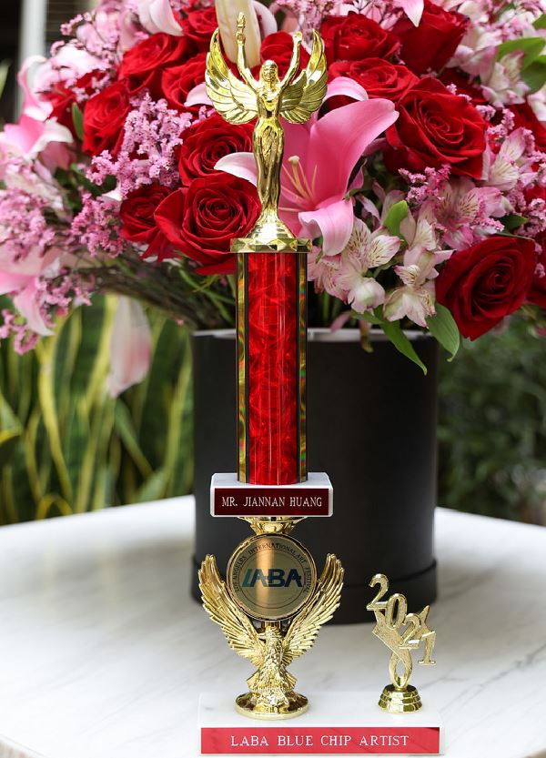 △黄建南获得的”LABA国际艺术节蓝筹股艺术家”奖杯