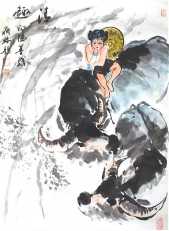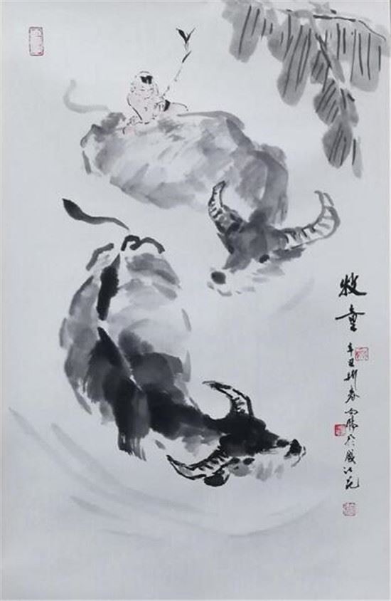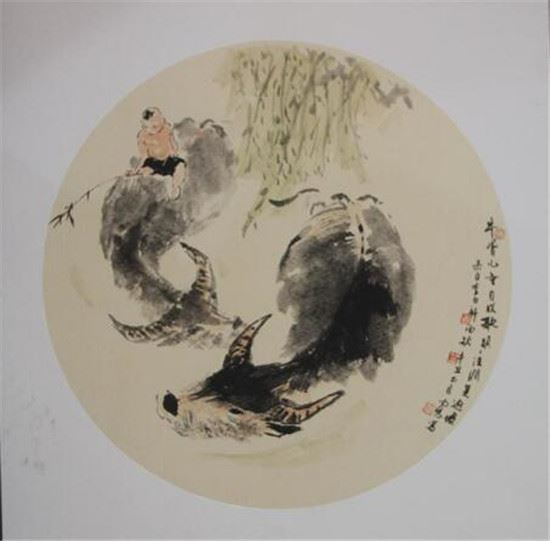 在民间,也有许许多多与牛有关的文化活动与艺术作品。少数民族喜欢用自家的牛来开展各种各样的比赛活动,激烈热闹的斗牛活动每年都如火如荼地在苗侗族等少数民族村落里上演,人们唱歌跳舞来庆祝节日,祈愿美好,表达对美好生活的向往。每逢庆祝中国新年,家家户户都会在窗户上贴上漂亮的剪纸来庆祝新年的到来。这些剪纸中有很多牛的剪纸,这些剪纸既反映了劳动人民的农耕生活,也寓意着人们勤勤恳恳,艰苦奋斗,追逐美好生活的心愿。可见,画牛是中国人一个喜闻乐见的永恒主题。
