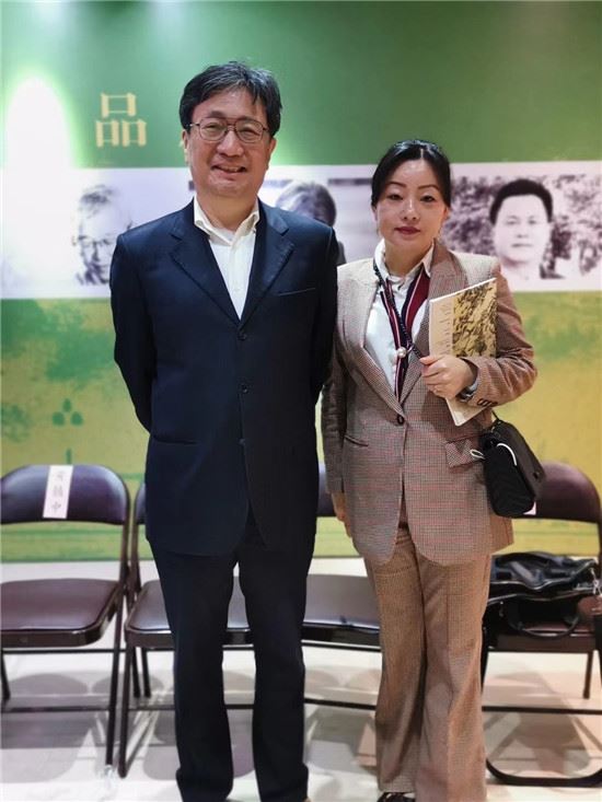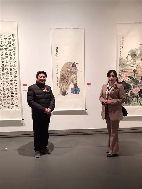 图为王菊芳与中国文联副主席、西泠印社秘书长、浙江大学人文学院前院长、中国美院博导陈振濂老师合影。