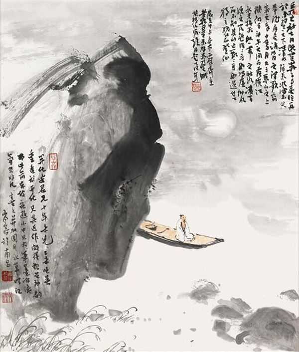 在开化县城的一个不大的小区里,章安君可谓是这个山城里的一位隐士,以诗 养心,以画抒情,以文交友,以整个生命的代价来滋养澎湃之梦,他不求闻达,不求名利,不求回报,从淡泊中来,向淡泊中走去,日夜研习,耕云读月;以此为乐,乐此不疲;他用病弱之躯创作出大量的诗文书画,从这些诗文书画中一 点也看不出他悲苦的痕迹,这种坐看云起,卧听松风般的书斋生活,深藏着生命中最坚强的毅力和精神,这种隐士般的风骨 ,在他的笔墨中表现得淋漓尽致:他的画;尽显高士、渔隐、墨客、酒仙;他的石头雄强峥嵘;他画的云气一展天风诗怀,而他画的古人行不由径,孤寒自得;看他的画;以文人画为取向又融进傳抱石的散笔抱石皴;大笔纵横、大胆创新;已见高古苍茫茫的笔墨情趣;他通过云山、树石、又与点景的人物结合起来、其山水可居、可游、可放怀、看他的画、诗中有画、画中有酒;这个酒是李白、陶公、东坡胸中之酒;可以醉出一片天地;这个酒也可以消除胸中忧愁,可壮胆、可提气,然后在宣纸中生发满纸烟霞,可见、诗文书画是他生命的一部分,被滋养和畅怀,己故国家文物局局长孙轶青曾看了他的个人诗书画展,评价其画“画意诗情、独辟蹊径”以赞许。