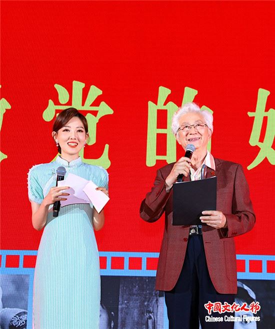 著名主持人、朗诵艺术家陈铎和中央电视台电影频道节目主持人郭玮主持“永远做党的好女儿——田华从事革命文艺工作80周年《华彩人生 田华画传》首发仪式”