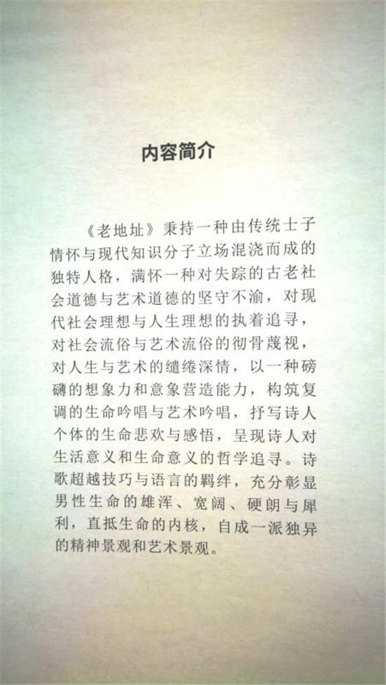 诗歌用怎样的表达方式去写,是诗人自己的事情,而诗人作品的气场和存在价值,却和一个诗人的造化有关:内在的、外界的、地域的、世界的、单纯的、复杂的……对于任何作家来说,“怎样写”要比“写什么”更加重要,对于诗人来说也是这样,诗人内在素质常常表现在对生活素材的观察与表现上,如诗歌《半歌》对“半”字有自己独到的思考,无论是人生还是事业,很多时候,“半”比完整更好。再如作者在《刀的发生学》别出心裁地用“发生学”角度,用整体的氛围去烘托刀的复杂性,无论是石头的滚动,还是洪水的呼啸;无论是满天星光,还是对一台打磨机的打量,最终都把审美的触角凝聚到——刀。“刀”在这个文本中既是原因,更是结果,其内在关联令人深思。再比如诗歌《荒原》,作者把笔墨没有放在自然荒原,而是借代到文字的荒原,无论是小说的涌动,还是散文的挺拔;无论是格言的犀利,还是成语的慵懒,一起汇合成文字的原生态之河流。