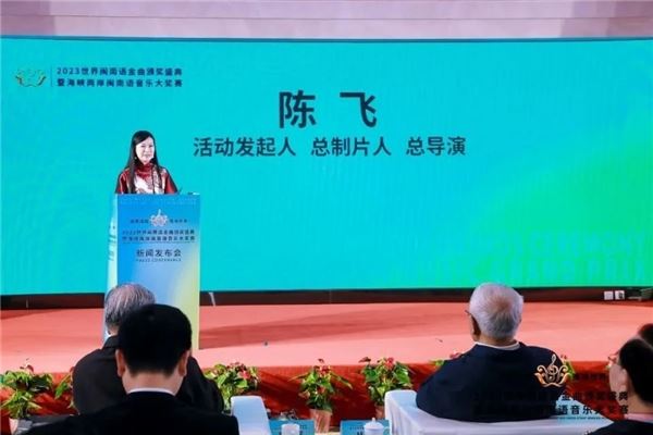 陈飞是“世界闽南语金曲大奖”发起人,也是总制片人、总导演。由她创办的厦门陈飞闽南文化产业有限公司是一家现代化闽南文化产业公司,20多年来从未中断过海峡两岸文化交流,以及在世界范围内传播闽南文化。陈飞说,闽南文化是中华文化的重要组成部分,作为闽南人,她一直以让闽南文化光耀全球作为毕生的奋斗目标。今年将努力让“2023世界闽南语金曲大奖”的关注度更上一层楼,借由闽南语音乐传递情感,助推两岸融合发展,促进各国人民对“一带一路”的认知、认同和响应。