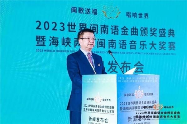 闽歌送福,唱响世界。4月27日上午,“2023世界闽南语金曲颁奖盛典暨海峡两岸闽南语音乐大奖赛新闻发布会”在北京福建大厦福建堂举办。此次赛事活动旨在搭建立足闽台,辐射全球的平台,树立闽南语音乐文化标杆品牌。在共建“一带一路”倡议提出10周年,两岸开启交流35周年之际,以“侨”架桥,共享机遇。以歌传情,融汇两岸。