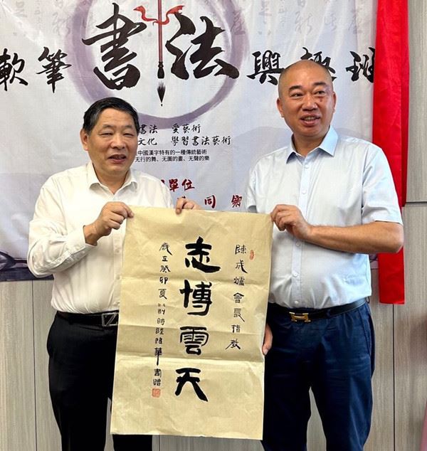 陈成炉会长与陆惟华博士向学员们展示了陆惟华老师书写的书法:志博云天