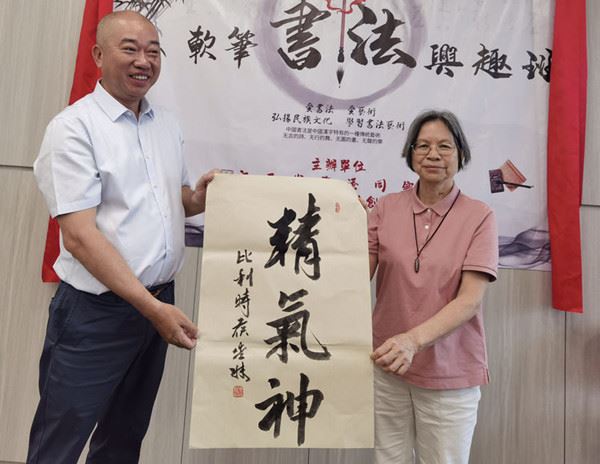 本网讯(欧盟首都布鲁塞尔消息)2023年6月10日(星期六)上午10:00时,江西省旅港同乡会、中华两岸(香港)文创观光协会联合主办的“软笔书法兴趣班”首次课程暨开班仪式在香港万泰利广场隆重举行。