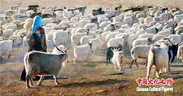 韩玉臣油画作品《牧羊女》