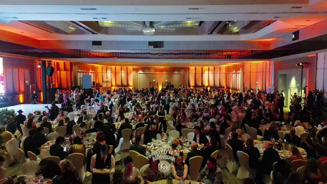 图为环球影城希尔顿酒店举行的“97届奥斯卡观摩颁奖典礼”晚会现场