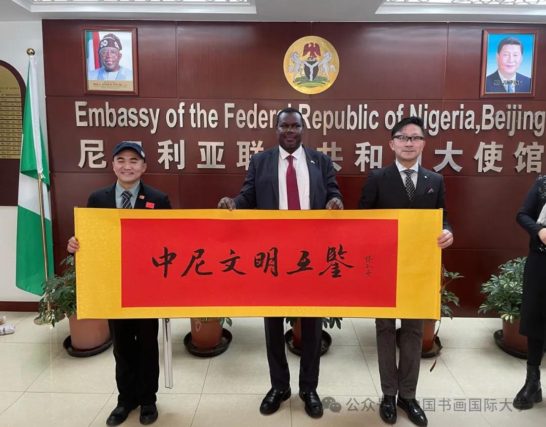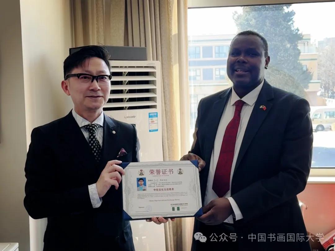 2024年3月7日,中国书画国际大学执行校长杭舟被尼日利亚联邦共和国表彰为“中尼文化交流使者”。尼日利亚驻华大使瓦基尔在大使馆向杭舟校长颁发了荣誉证书。2024年3月8日,杭舟校长被意大利达芬奇国际文化基金会授予“中意文化艺术交流大使”称号。