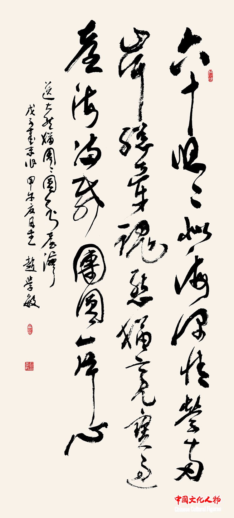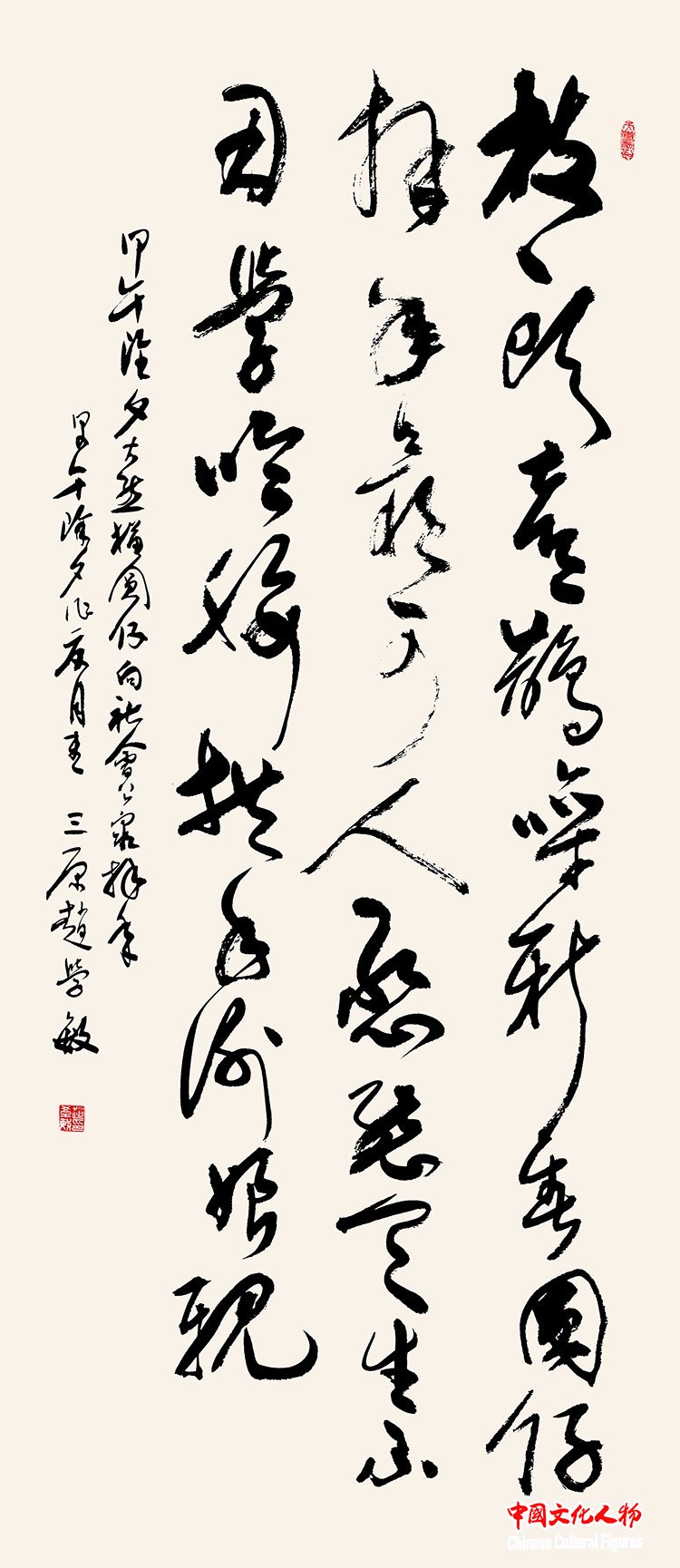 中国文化人物(主编 王保胜)由中共三原县委、三原县人民政府、中国文化人物杂志社、西安市北朝碑刻学社主办,西安交通大学城市学院、西安市北朝碑刻学社、三原县于右任书学院承办的“三原于右任书学院成立大会”“国际碑学研讨会暨北碑书法展”分别于9月19日、9月20日在于右任故里——陕西咸阳三原县举办。当代著名书法家、诗人赵学敏应邀参展并向故乡陕西三原县人民政府捐赠100幅书法精品。
