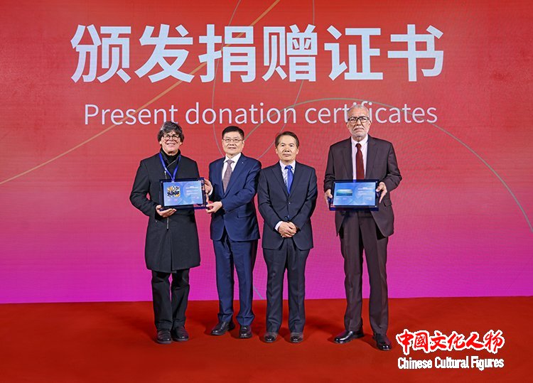开幕式现场还举行了捐赠证书颁发仪式。中国美术家协会分党组成员、副秘书长、一级巡视员朱虹子为澳大利亚参展艺术家彼得·普莱颁奖;首旅集团党委书记、董事长白凡为巴基斯坦艺术家索拉娅·西坎德尔颁奖,其证书由巴基斯坦驻华大使馆新闻部长曼祖尔·阿里·梅蒙代为领取。