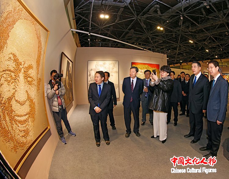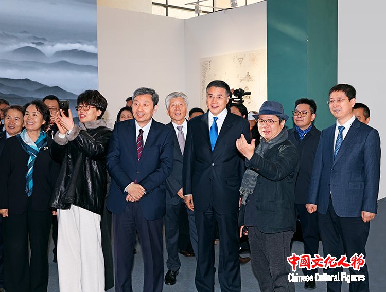 中国文学艺术界联合会党组书记、副主席张政参观展览,并与中共北京市委常委、宣传部部长孙军民,中国文学艺术界联合会党组成员、副主席诸迪,中国美术家协会主席范迪安,中国美术家协会分党组书记、驻会副主席屈健等在展览作品前交流