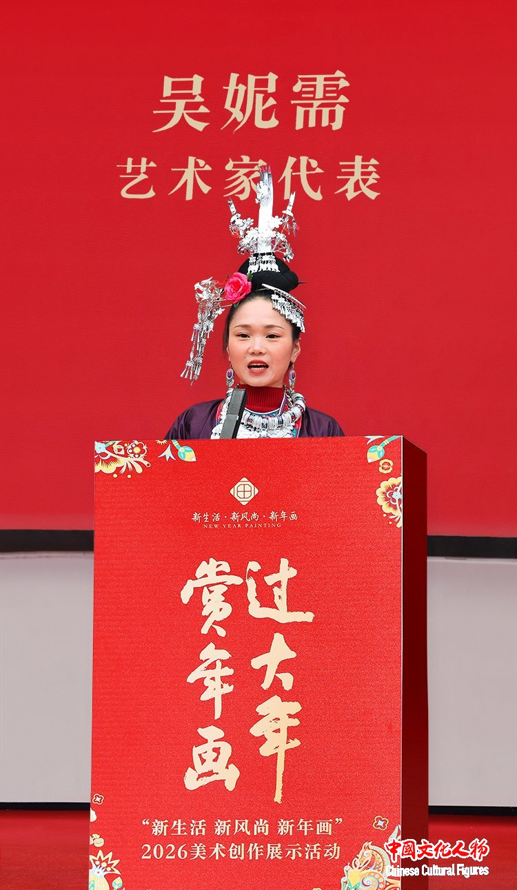 来自广西侗族三江自治县的艺术家吴妮需代表参展画家发言。她表示,“新生活·新风尚·新年画”是时代赋予文艺工作者的创作命题,也是基层画家的心之所向。作为农民画家,大家扎根乡土,希望通过手中的画笔,记录乡村巨变、传递乡土温情,以文艺力量赋能乡村振兴,让每一幅新年画都成为映照乡村活力的镜子、连接城乡情感的桥梁、激发群众奋进的力量。