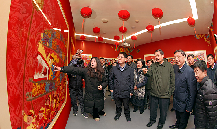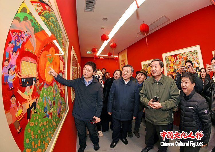 中国文联党组成员、副主席诸迪,中国美术家协会分党组书记、驻会副主席屈健,江西省文联党组书记饶利萍,中共抚州市委书记范小林等领导和艺术家一起参观2026年“新生活·新风尚·新年画”美术创作展