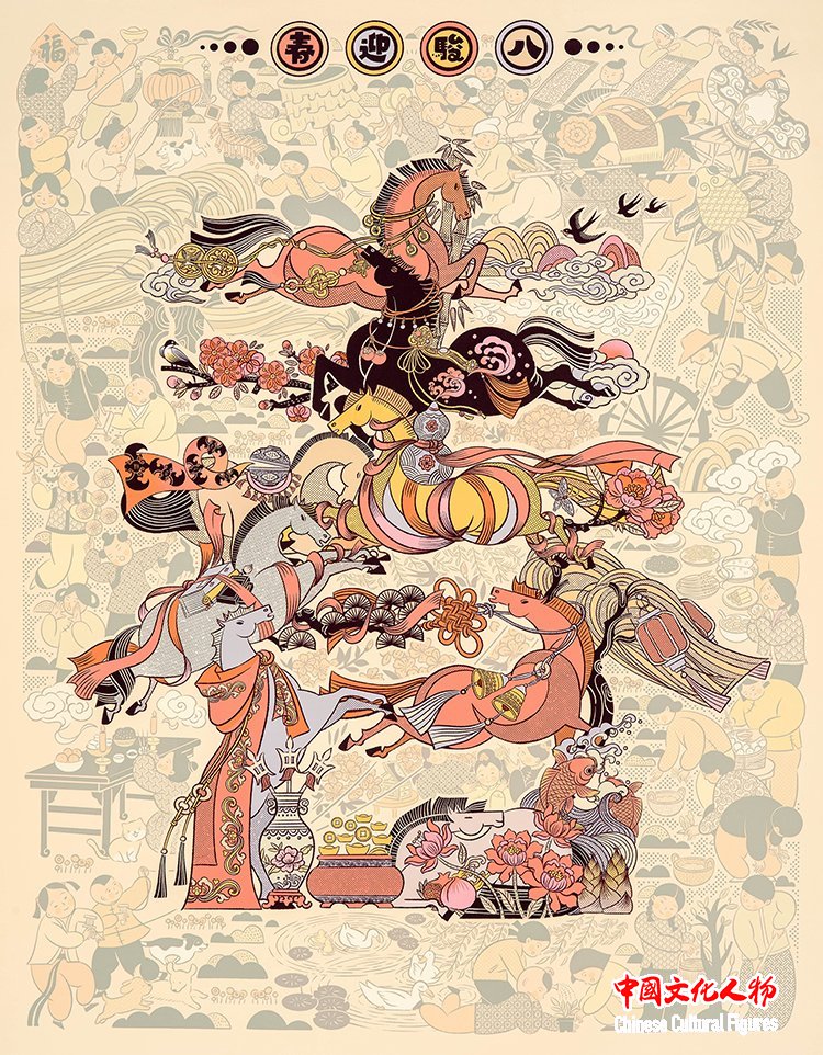 邵陆芸 《八骏迎春》 浙江