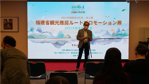 中国驻东京旅游办事处王伟主任在致辞中表示,以往推介福建的活动主要是介绍福建的美食文化、自然风景等,本次展览首次以推介旅游线路为主题,更符合日本旅行业者的需求。福建人在他们悠久的历史中形成了独自的生活方式与充满趣味的地方方言,同时也养成了爱拼才会赢的积极人生态度,使全世界的人们迷上了福建之美。希望日本新老朋友在疫情结束后去福建体验富于魅力的历史文化、人情风貌。