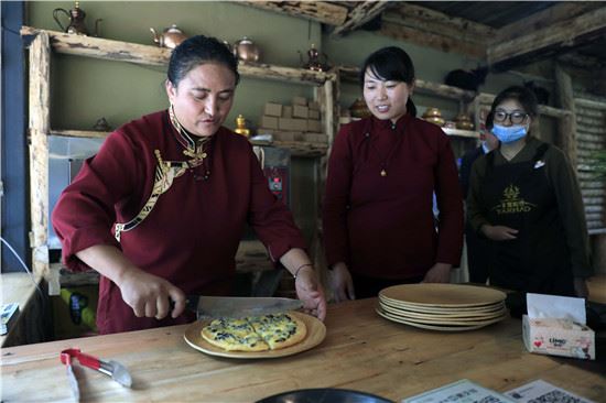 中新网阿坝8月28日电(起钰婷)热情迎接观光的游客,倒上一杯热气腾腾的藏茶,端上一盘青稞饼,带游客参观房间,介绍当地的民俗风情......28日,68岁的四川省阿坝州黑水县羊茸村村民俄木如往常般,打理着自家民宿的生意。从过去生活在深山里以土豆、青稞种植为主,到现如今整村发展全域旅游,羊茸的村民纷纷吃上了“旅游饭”。