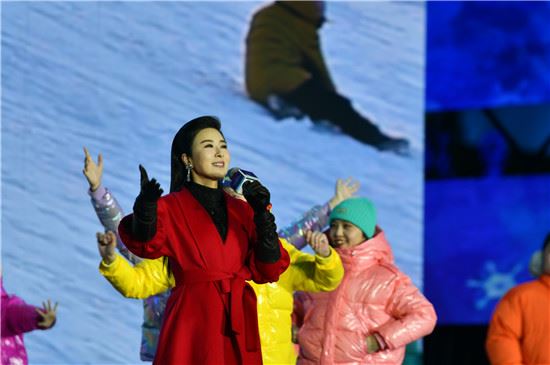“冬奥文化推广使者”、“长春冰雪旅游推广大使”伊丽媛献唱长春冰雪节。梁琪佳摄