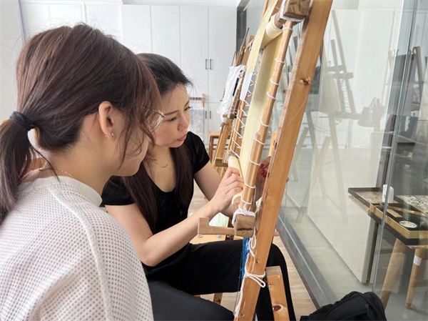在乱针绣博物馆,大家聆听了乱针绣开创者杨守玉先生的故事,观赏了一幅幅国宝级的绣品,还走进创作工作室,学习了上梆架、拓稿、接针等刺绣步骤。