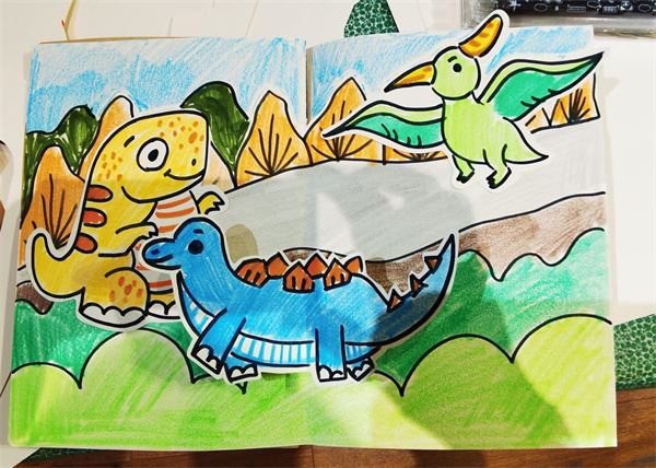 在三天的学习中,营员们热情高涨,学有所得,也学有所乐。大家用手中的画笔制作了一本本生动有趣的立体书,讲述属于自己的恐龙故事,还用小小纸张折出一个个惟妙惟肖的恐龙、犀牛、大象等,缔造出缤纷而又神奇的侏罗纪世界。