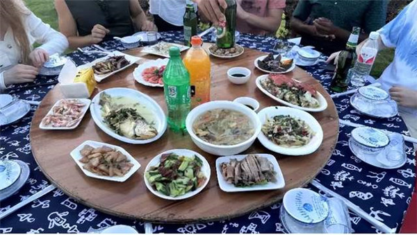 本届海蜇文化节由岱西文旅公司主办,在现场,海外推介官们亲眼见证了海蜇制作的精湛工艺,每一步都凝聚着渔民的心血与智慧。重头戏随之而来,那是一场令人垂涎欲滴的海蜇宴。餐桌上,各式各样的海蜇佳肴琳琅满目,黄豆芽炒海蜇皮的清新爽口、葱油韭菜海蜇皮的鲜香四溢、肉丝炒海蜇头的醇厚鲜美……每一道菜都是对味蕾的极致诱惑,也是对双合村海蜇文化的一次完美诠释。推介官们纷纷品尝,赞不绝口,他们不仅被这些美味佳肴所征服,更被这份源自海洋的纯粹与匠心所打动。