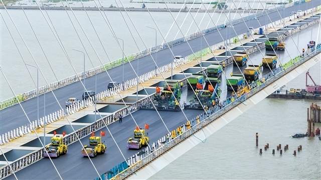 10月4日,广东交通集团发布消息,黄茅海跨海通道项目顺利完成高栏港大桥双幅钢桥面铺装施工。