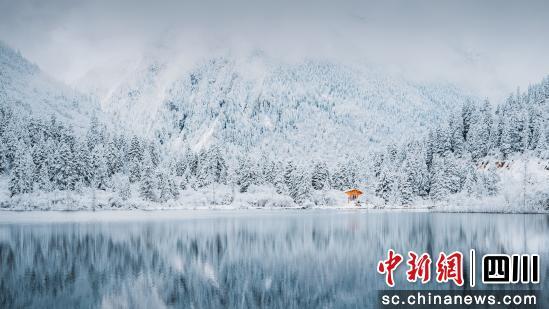 近日,位于四川省阿坝州黑水县的达古冰川披上了银装,层林、山峰、木屋都一片纯白,造就了达古冰川独特的冬日冰雪奇观。