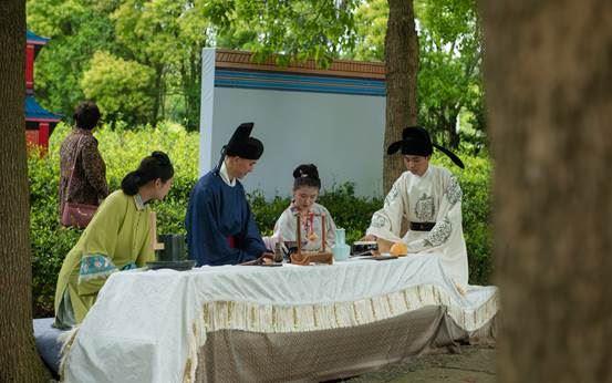 走进茶园,沿着石阶拾级而上,从神农时期到唐宋时期再到明清时期,沿途的茶文化展示点内,茶艺师们为来宾展示各朝代的制茶技艺和泡茶方法,呈现我国茶文化发展演变过程,吸引了不少来宾驻足品茗。