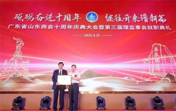 欧中之声讯|纳斯达克中文1216国际广播,中国当地时间2021年4月25日,广东省山东商会十周年庆典大会暨第三届理监事会就职典礼在广州圣丰索菲特大酒店隆重召开,世界和平丝带组织副秘书长、波兰委员会总干事杜国勇先生向庆典活动转交了世界和平丝带组织领导人陈恩田主席的贺信。