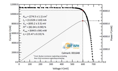 中新经纬客户端7月13日电 (徐杨祎)通威太阳能12日晚透露,通威太阳能利用PERC量产设备,通过电池制程工艺创新,M6大尺寸全面积(Area=274.50cm2)电池转化效率可达23.47%,并经ISO/IEC 17025第三方国际权威机构认证,创造了M6大尺寸全面积产业化PERC电池效率的世界纪录。