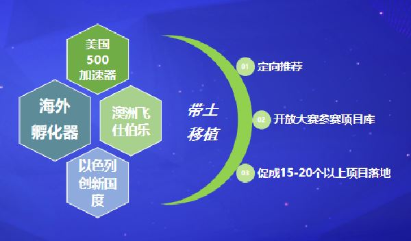 通过和美国500加速器、澳洲飞仕伯乐、以色列创新国度等海内外知名孵化器的在华机构的合作,尝试实现海外优质创新创业项目的“带土移植”。同时面向合作单位开放大赛参赛项目库,鼓励合作机构促成15-20个以上参赛项目在杭落地。