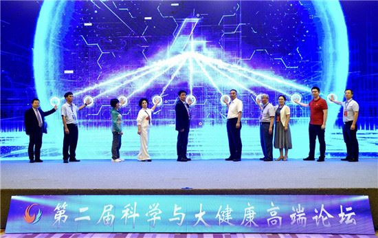 第二届科学与大健康高端论坛上,来自天津、黑龙江、辽宁、广西、河南、北京等地的相关院士、院校专家,部委、协会领导,大健康产业、医药界代表,主流媒体代表踊跃上台,共同启动了《科学与大健康》健康产业品牌联合体,积极支持大健康产业发展,助力健康中国建设。(刘新武 摄影)