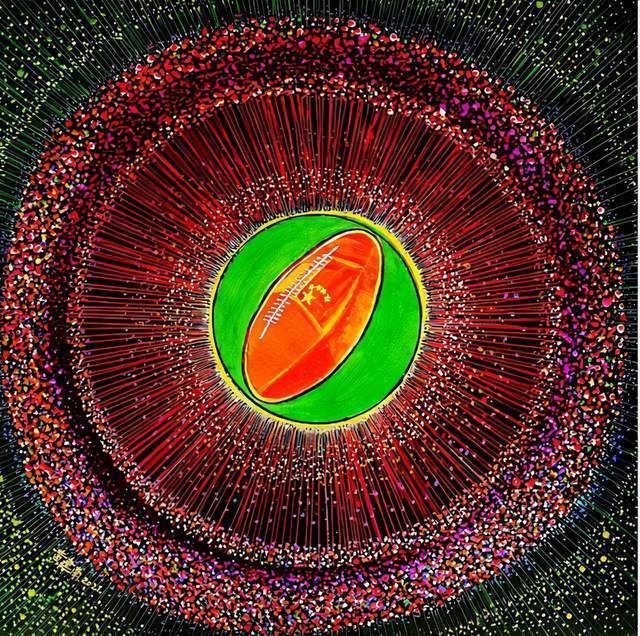 △黄建南为中国女橄队创作的《绿茵之光,巾帼力量》